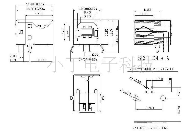 Разъем типа USBB женский USB интерфейс для принтера с углом 90 градусов D-образный квадратный разъем B женский с углом 90 градусов ROHS