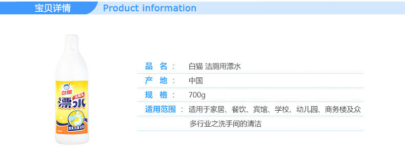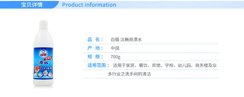 Отбеливатель для туалета White Cat 700 мл × 2 бутылки, чистящее средство для унитаза, удаление пятен в ванной