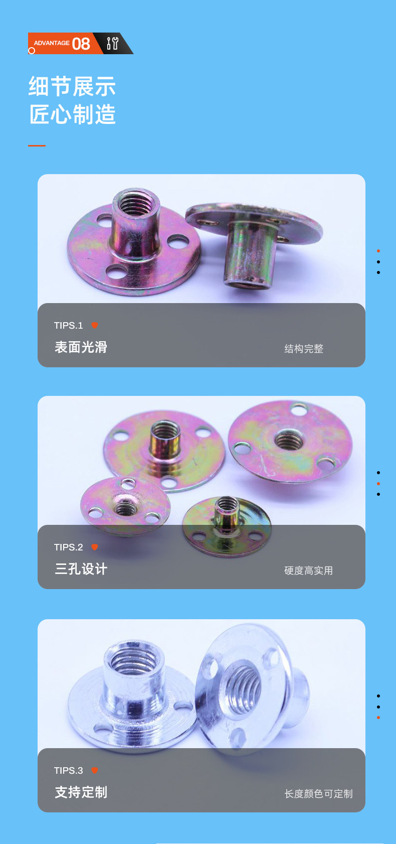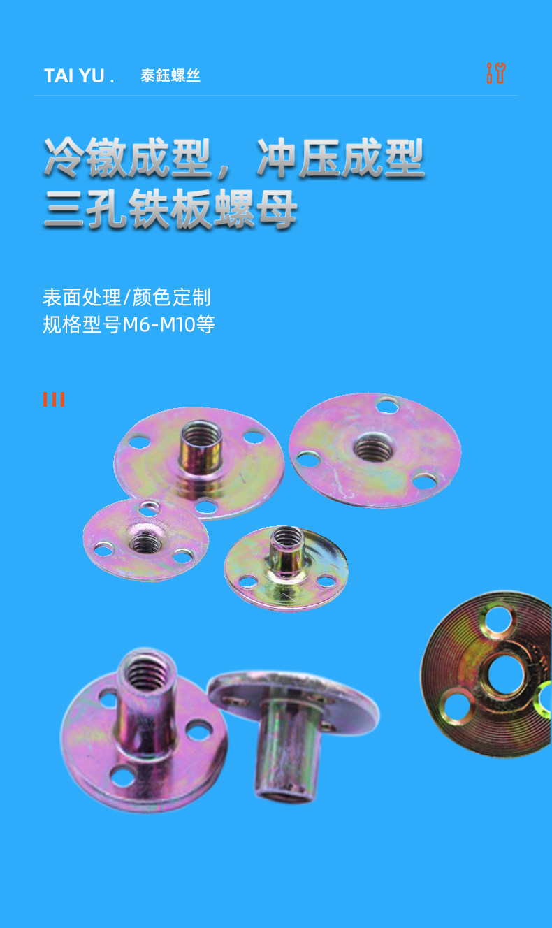 Трёхотверстная гайка, утолщённая железная пластина, мебельная запорная гайка, гайка для скалодрома, Т-образная круглая гайка, метрическая железная гайка