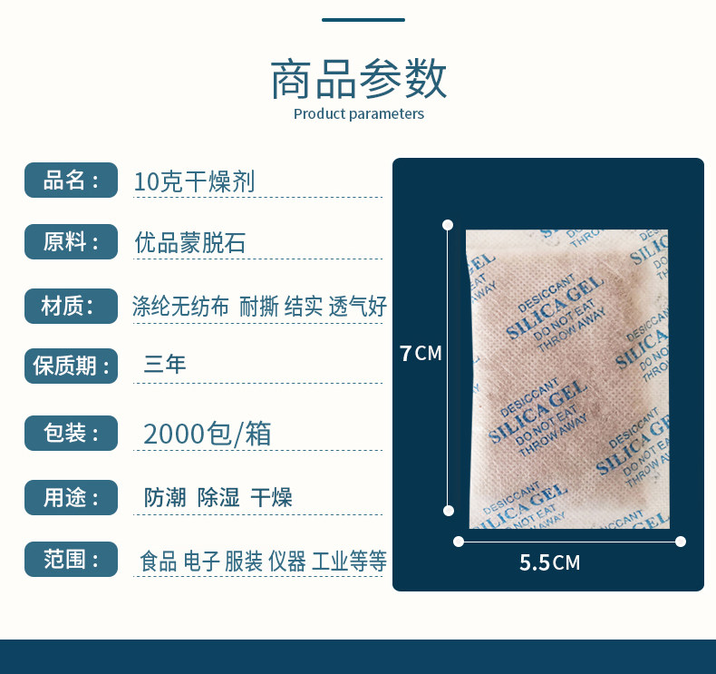 10г Монтмориллонитовый осушитель в нетканой упаковке для пищевой, электронной и промышленной продукции