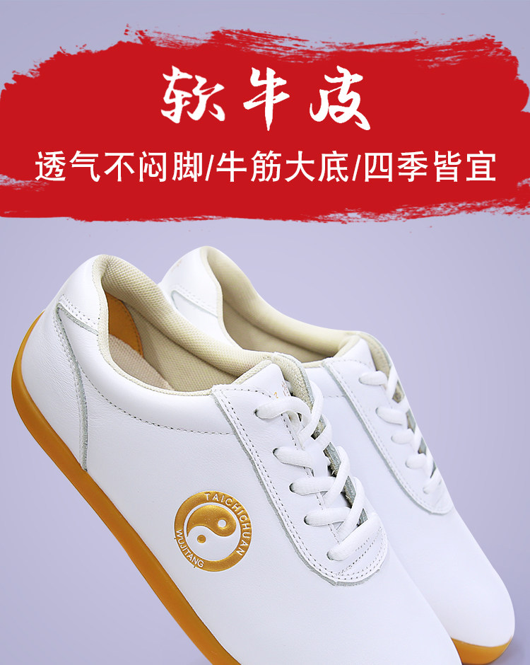 Обувь для Тайцзи Wujitang с верхом из натуральной кожи и подошвой из резины для мужчин и женщин, дышащая обувь для занятий Тайцзи весной, летом и осенью