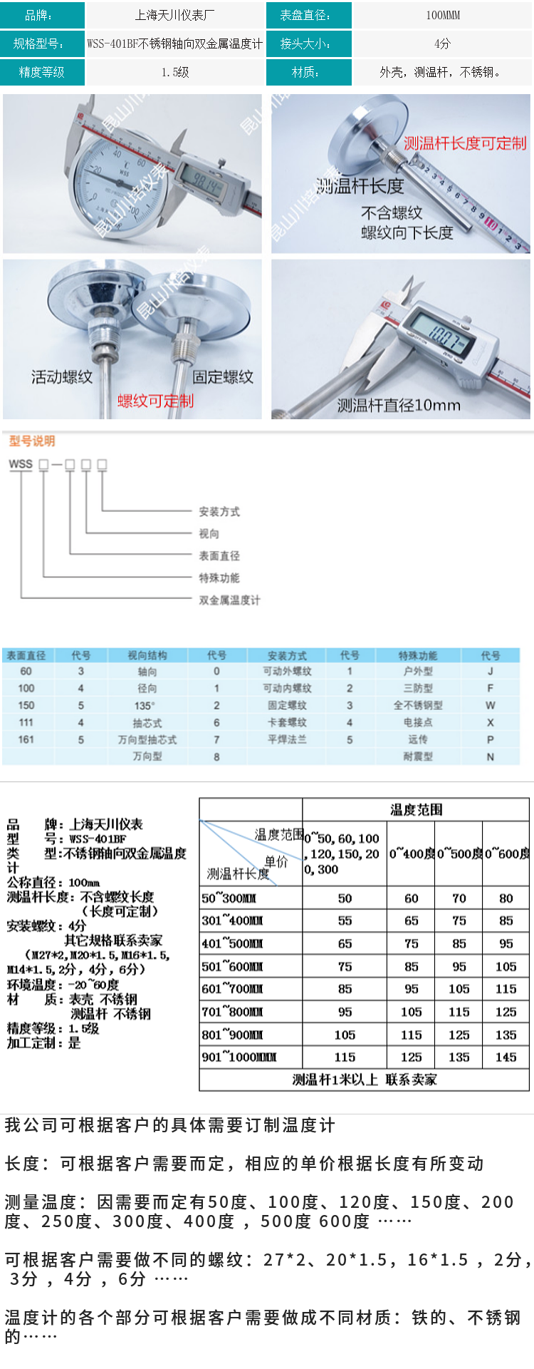 | Цветовые варианты | 0-50°C, резьба 1/2", длина зонда 50 мм; 0-100°C, резьба 1/2", длина зонда 50 мм; 0-50°C, резьба 1/2", длина зонда 65 мм; Размер резьбы, длина зонда, примечания; 0-100°C, резьба 1/2", длина зонда 65 мм; 0-150°C, резьба 1/2", длина зонда 90 мм; 0-200°C, резьба 1/2", длина зонда 90 мм; 0-300°C, резьба 1/2", длина зонда 90 мм; Для удлинения зонда требуется дополнительная оплата, свяжитесь с продавцом; 0-60°C, резьба, длина зонда, примечания; 0-120°C, резьба, длина зонда, примечания; 0-50°C, резьба, длина зонда, примечания; 0-100°C, резьба, длина зонда, примечания; 0-150°C, резьба, длина зонда, примечания; 0-200°C, резьба, длина зонда, примечания; 0-300°C, резьба, длина зонда, примечания; 0-50°C, резьба 1/2", длина зонда 90 мм; 0-100°C, резьба 1/2", длина зонда 90 мм; длина 300 мм; длина 400 мм; длина 500 мм; длина 600 мм; длина 700 мм; длина 800 мм; длина 900 мм; длина до 1 метра при температуре до 300°C |