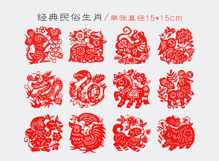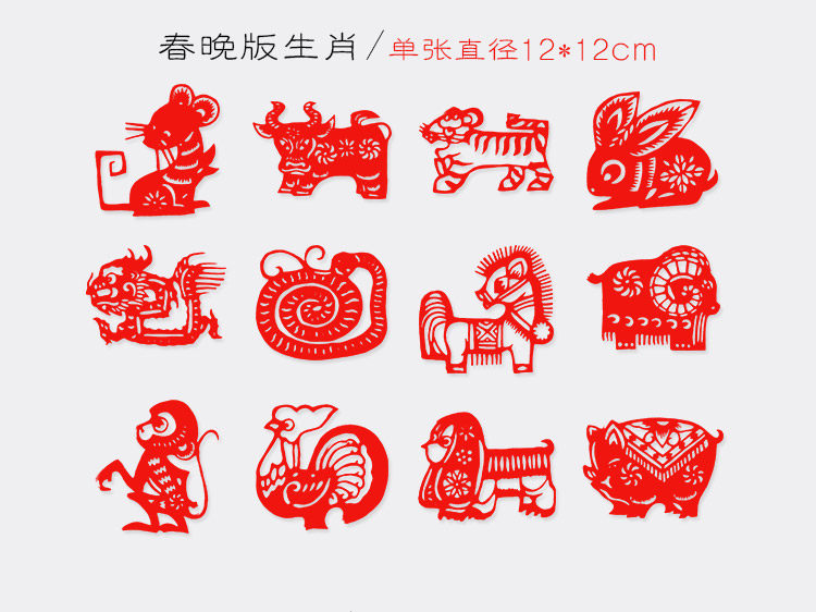 【Бесплатная доставка Зодиака】Набор из 12 китайских знаков зодиака, выполненный вручную в технике вырезания из бумаги, китайские народные ремесла, подарок за границу