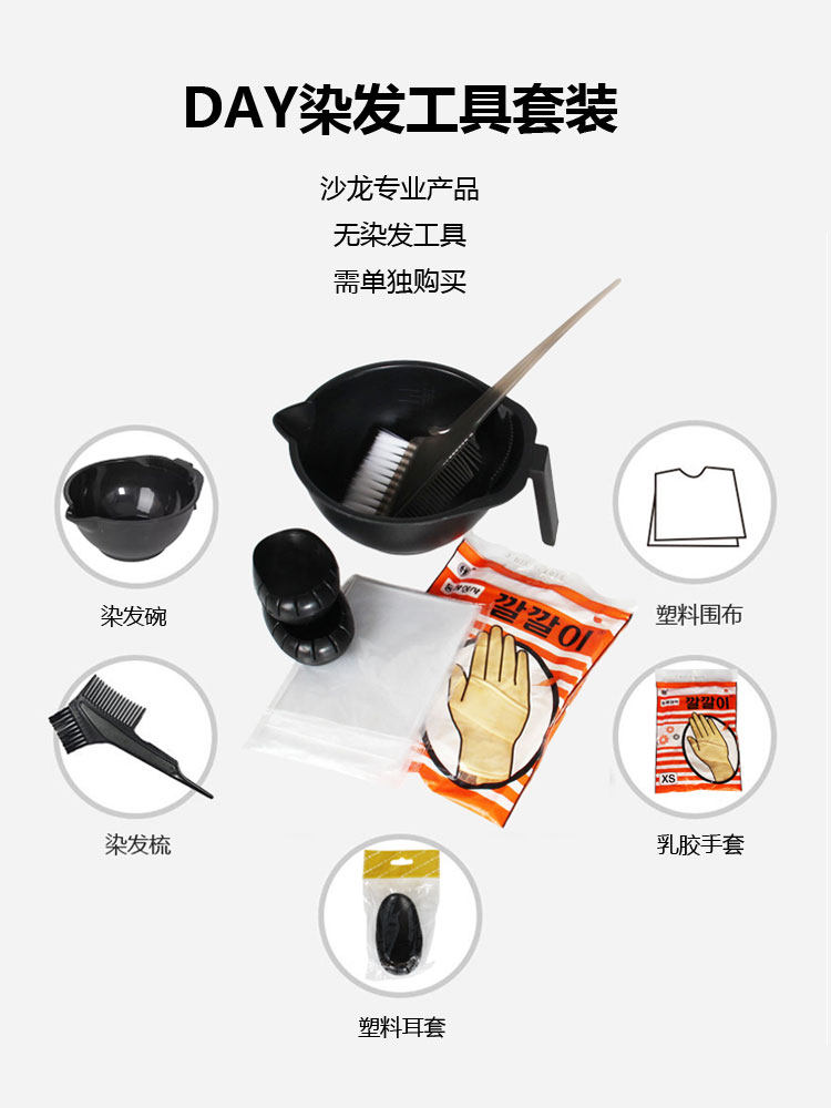 | Цветовые варианты | 1N Черный 500 мл (без инструмента), 3N Темно-коричневый 500 мл (без инструмента), 4N Натуральный коричневый 500 мл (без инструмента), 5N Светло-коричневый 500 мл (без инструмента), 5CB Каштановый коричневый 500 мл (без инструмента), 5VB Фиолетово-коричневый 500 мл (без инструмента), 6MB Красно-коричневый 500 мл (без инструмента), Инструмент для окрашивания DAY |