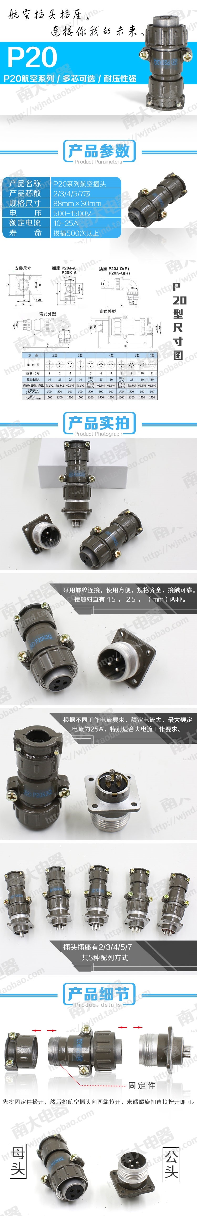 Авиационный штекерный разъем P20K3Q P20K6Q P20K9Q P20 2-контактный 3-контактный 4-контактный 5-контактный 7-контактный